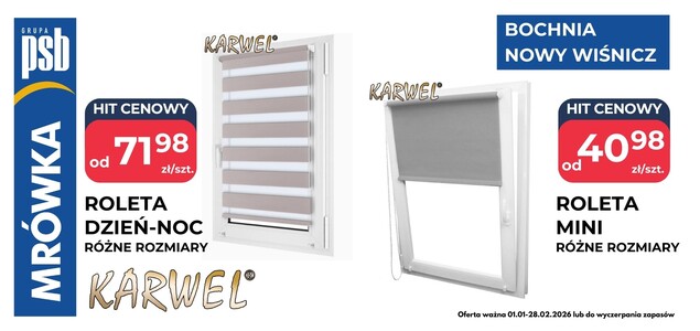 W tym miesiącu w marketach PSB Mrówka w Bochni i Nowym Wiśniczu prezentujemy markę Karwel – cenionego polskiego producenta funkcjonalnych rozwiązań okiennych i elementów wyposażenia wnętrz.